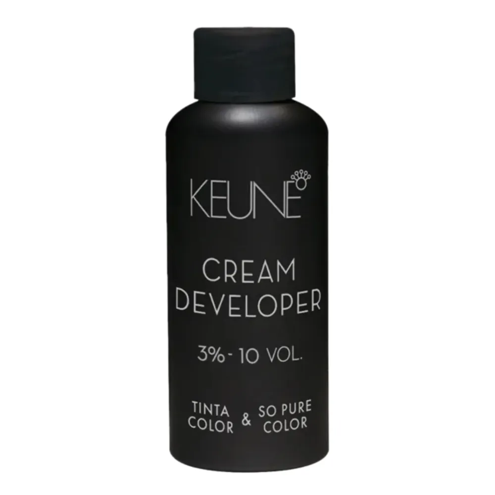 A Água Oxigenada Cream Developer Keune 10 Vol 3% 60ml é indicada para procedimentos de coloração, tonalização e ativação de tinturas que exigem baixo poder de clareamento. Possui textura cremosa, que facilita a mistura com a coloração e garante aplicação uniforme.