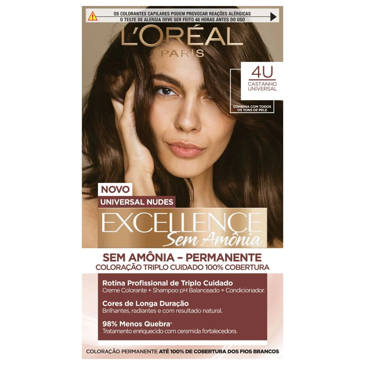 O Kit Imedia Excellence Sem Amônia 4U L’Oréal Paris proporciona coloração uniforme, brilho intenso e proteção aos fios.