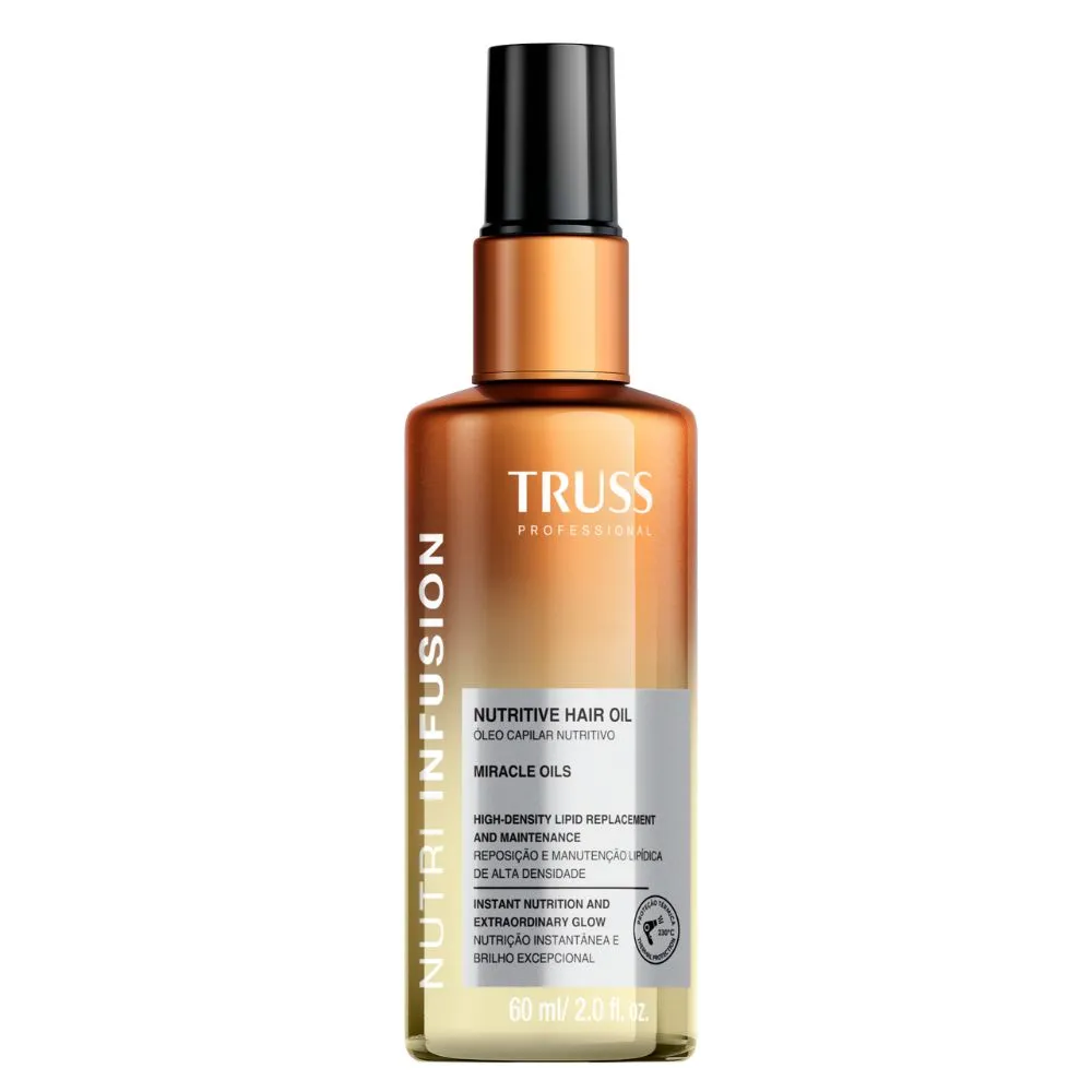 O Óleo Nutritivo Nutri Infusion 60ml Truss é um tratamento capilar concentrado desenvolvido para repor lipídios essenciais, nutrir profundamente e devolver a vitalidade dos fios. Indicado para cabelos ressecados, opacos ou danificados.