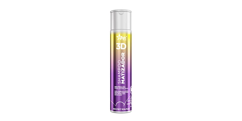 O Shampoo Matizador 3D da Magic Color foi desenvolvido para limpar suavemente os fios enquanto neutraliza tons amarelados e indesejados em cabelos loiros, grisalhos, brancos ou descoloridos. Sua fórmula ajuda a manter a tonalidade mais fria, iluminada e com efeito platinado.